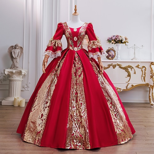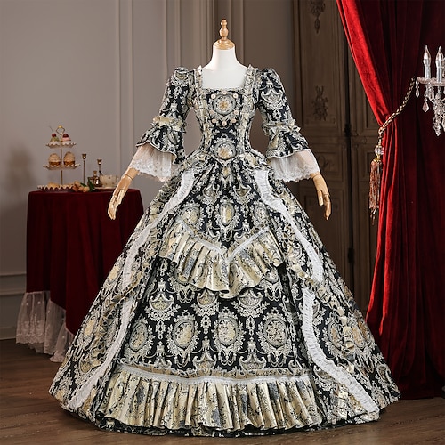 Vintage Rococò Barocco Maxi Vestito Normale A sbuffo Costumi a tema film / TV regina Elisabetta Principessa Collo quadrato Costume Reale Halloween Carnevale Mascherata Performance Feste Halloween