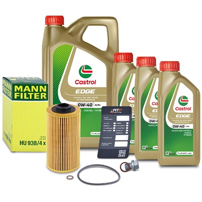 Mann-filter Ölfilter+Schraube+8L Castrol Edge FST 0W-40 A3/B4 [Hersteller-Nr. 10492672] für Land Rover, BMW