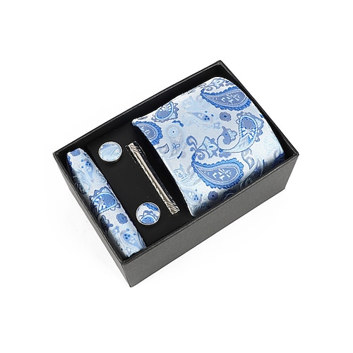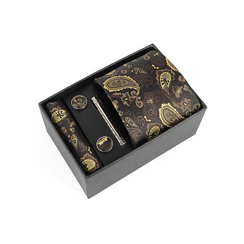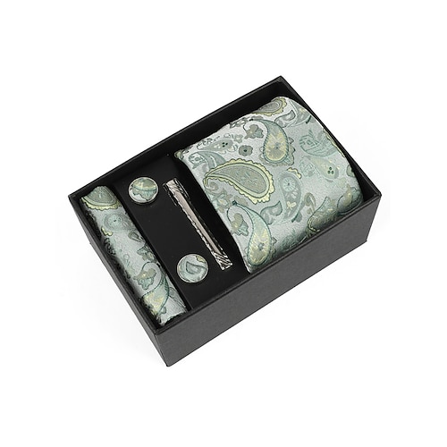 set regalo da uomo con cravatta paisley in poliestere, gemelli, fazzoletto da taschino e fermacravatta, perfetto per matrimoni e regali