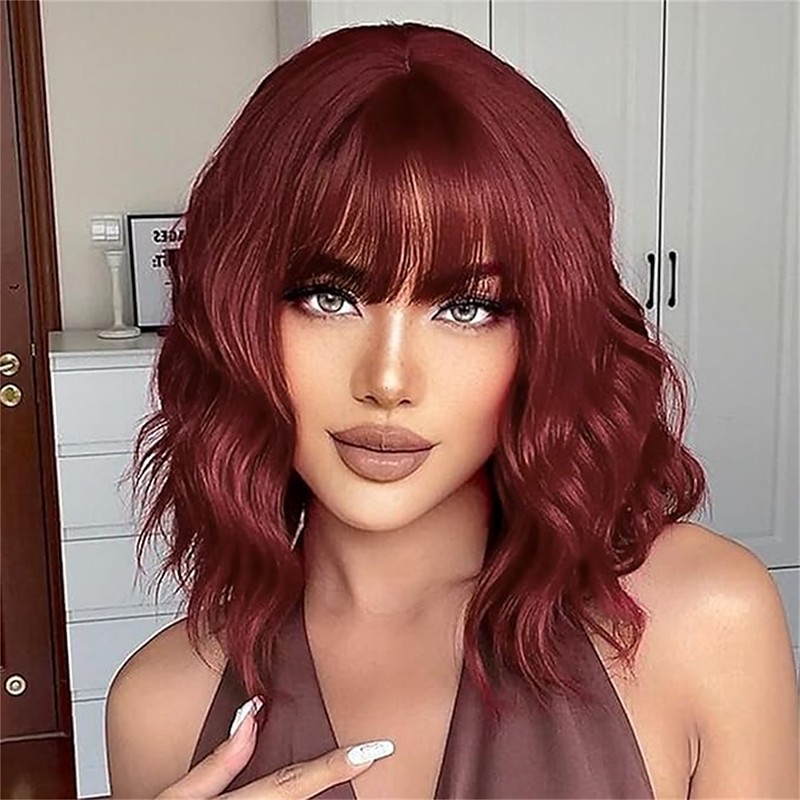 Wavy Wig with Bangs Soft Short Bob Wigs for Women Synthetic Shoulder Length Women's Curly Wigs for Halloween Costumes Cosplay Daily