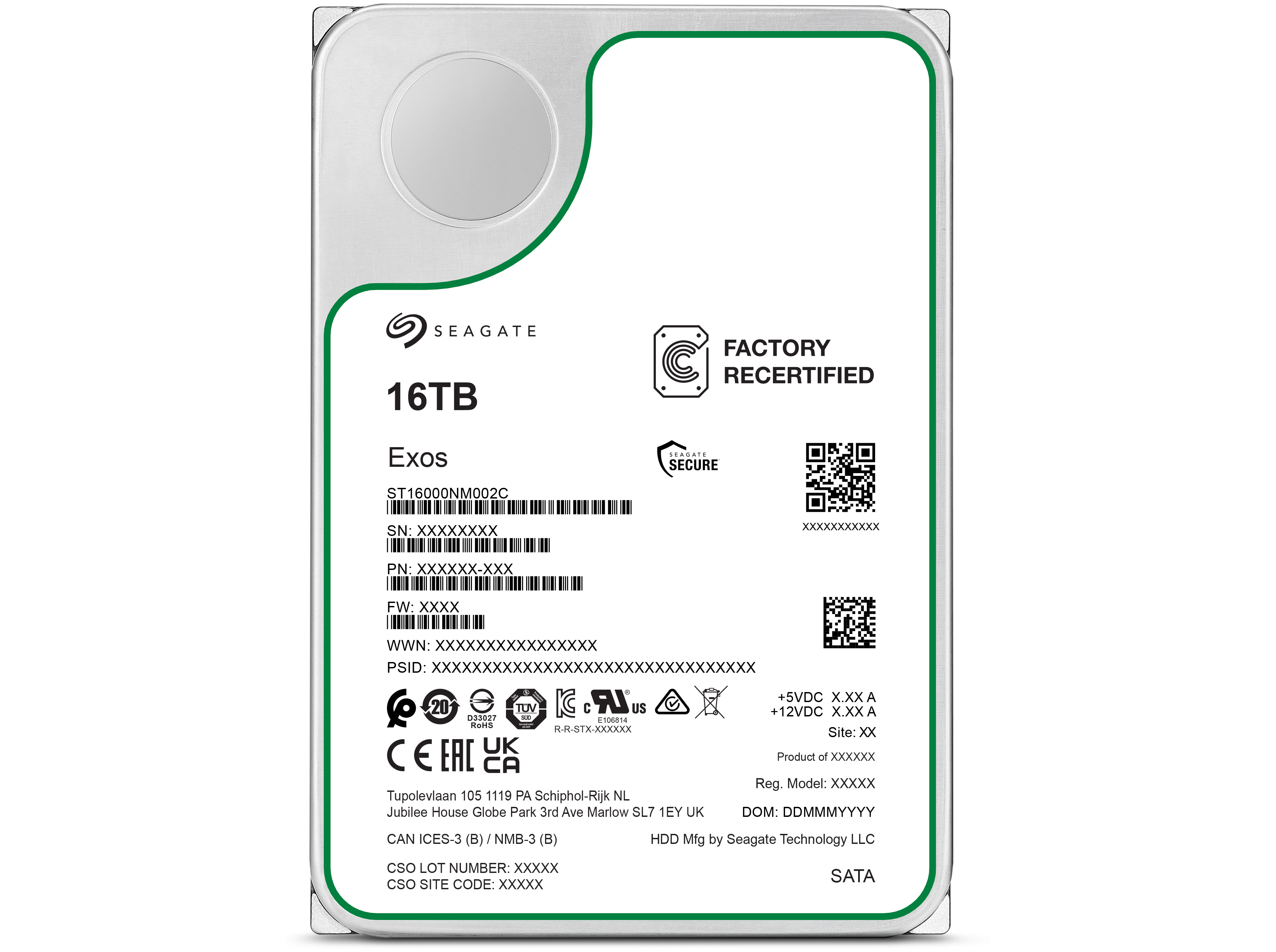 Seagate Exos Harddisk ST16000NM002C-FR 16TB SATA-600 7200rpm - FACTORY REFURBISHED
