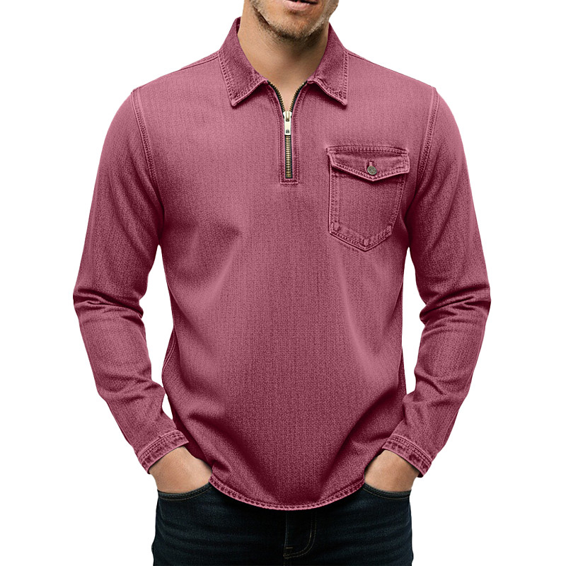 Men's Zip Polo Golf Polos Shirts Vacation Street Zip Long Sleeve Fashion Basic Plain Pocket Denim Spring Fall Spring Fall Regular Fit Black Pink Navy Blue Green Khaki Coffee Zip Polo