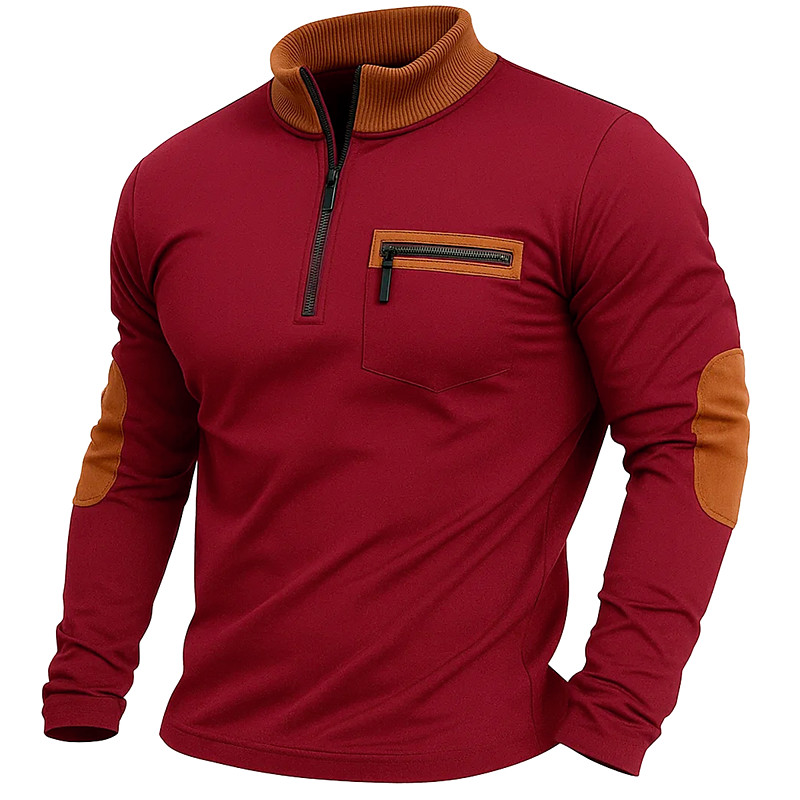 Mens Mock Neck Quarter-Zip Sweatshirts Causal Social Pocket Light Weight Stand Collar Pullover Sweatshirt for Men