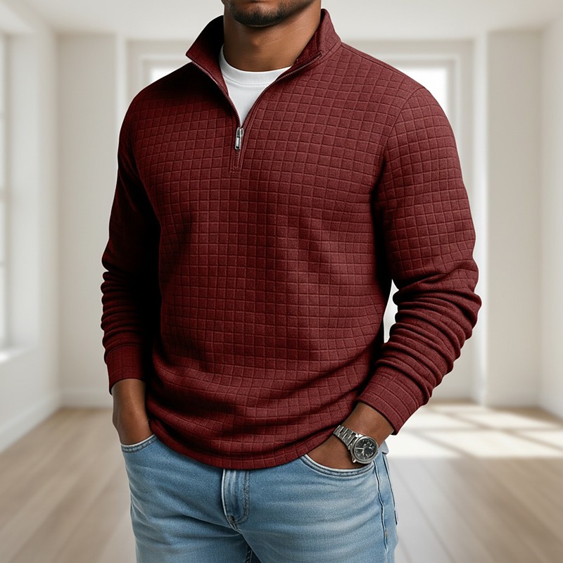 Men's Waffle Tee T Shirt Quarter Zip Tee Long Sleeve Stand Collar Fall Winter Spring Fall Solid Color Checkered Knitwear Daily Casual Zip Up Casual Daily Outdoor Wine Black White Top Tee for Men