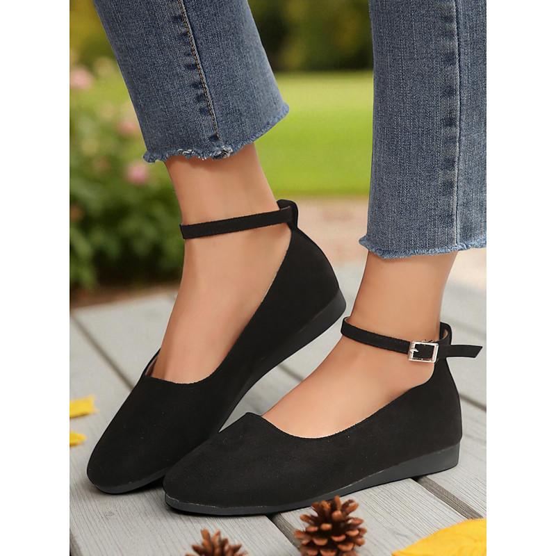 Women's Black Ankle Strap Faux Suede Flats – Elegant Casual Ballet Shoes for Office, Daily Walks Fall Outfits
