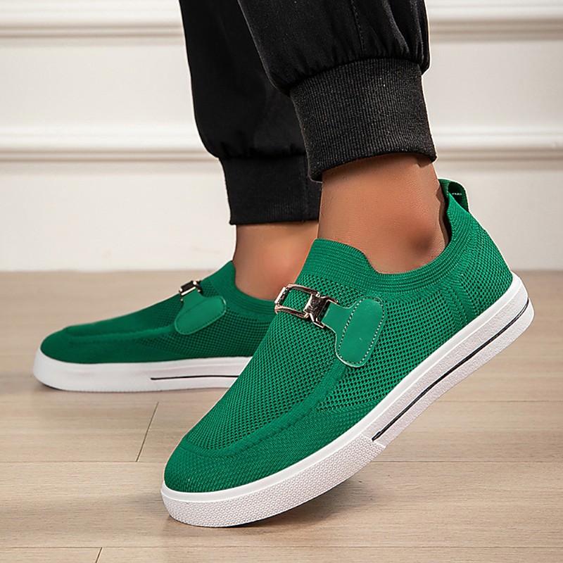 Men's Green Slip-On Sneakers, Breathable Mesh Athletic Shoes with Strap Detail, Comfortable for Casual and Sports Wear