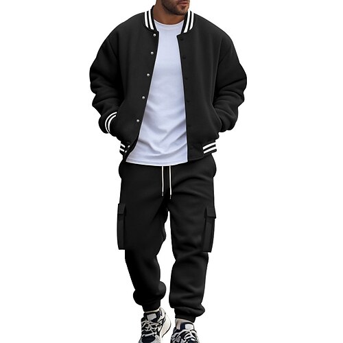 Per uomo Maglia Tuta da Ginnastica Set di abiti Collo alla coreana All'aperto Quotidiano Sportivo Coulisse Tasca A righe Nero Rosso Blu marino Poliestere Abbigliamento sportivo Moda Streetwear