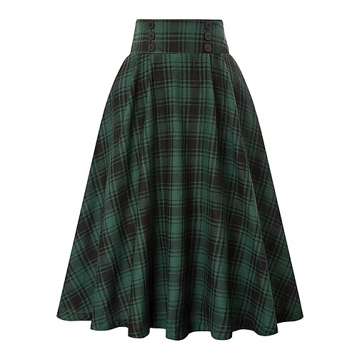 Per donna Gonna Linea A Svasato Moda Casual Lunghezza al ginocchio Misura del girovita medio Gonne Plaid Blocco di colori Splice Inelastico Ufficio / Carriera Streetwear Giallo Rosso Blu Verde Autunno