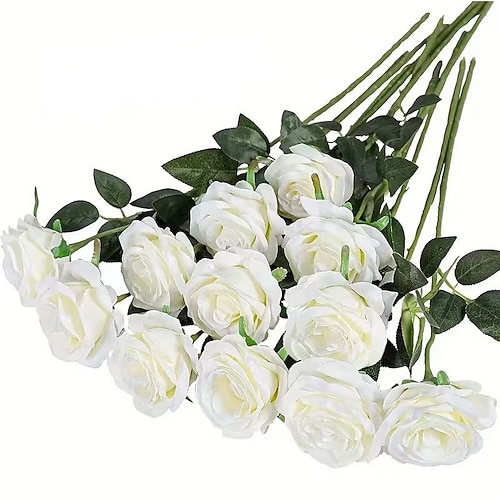 20 künstliche Seidenrosenzweige, realistischer Strauß langstieliger weißer Rosen, langlebige Kunstblumen für DIY-Dekorationen zu Hause, Hochzeiten und Feiern, elegante Tischdekorationen, verschiedene