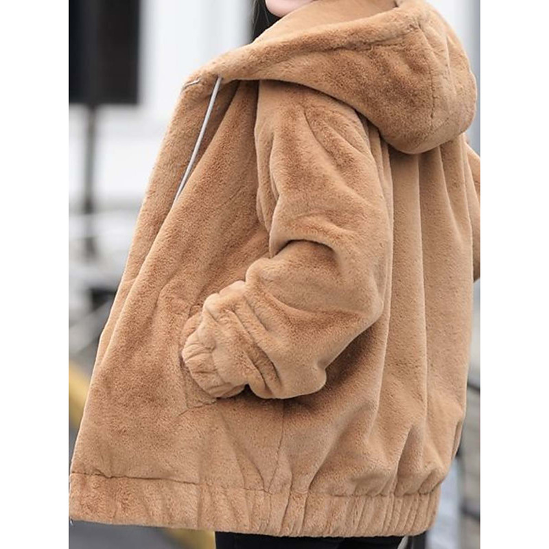 Women's Winter Coat Fleece Jacket Sherpa Jacket Warm Comfortable Pocket Elegant Cute Daily Casual Solid Color School Christmas Gifts Vacation Home Regular Hooded Loose Fit Long Sleeve Outerwear Brown