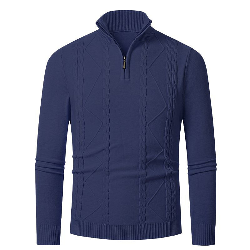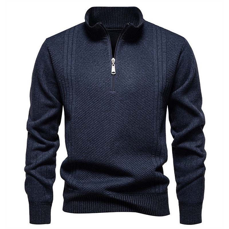 Men's Pullover Sweater Jumper Quarter Zip Sweaters Knit Sweater Cable Knit Regular Tops Knitted Plain Quarter Zip Fashion Casual Vacation Daily Wear Clothing Apparel Fall Winter Black Navy Blue S M L
