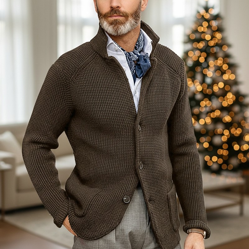Men's Sweater Dress Sweater Cardigan Sweater Waffle Knit Regular Tops Knitted Button-Down Stand Collar Classic Casual Clothing Apparel Raglan Sleeves Spring Fall Winter Blue Army Green XS S M