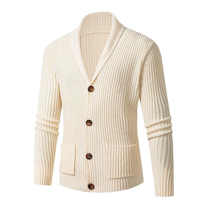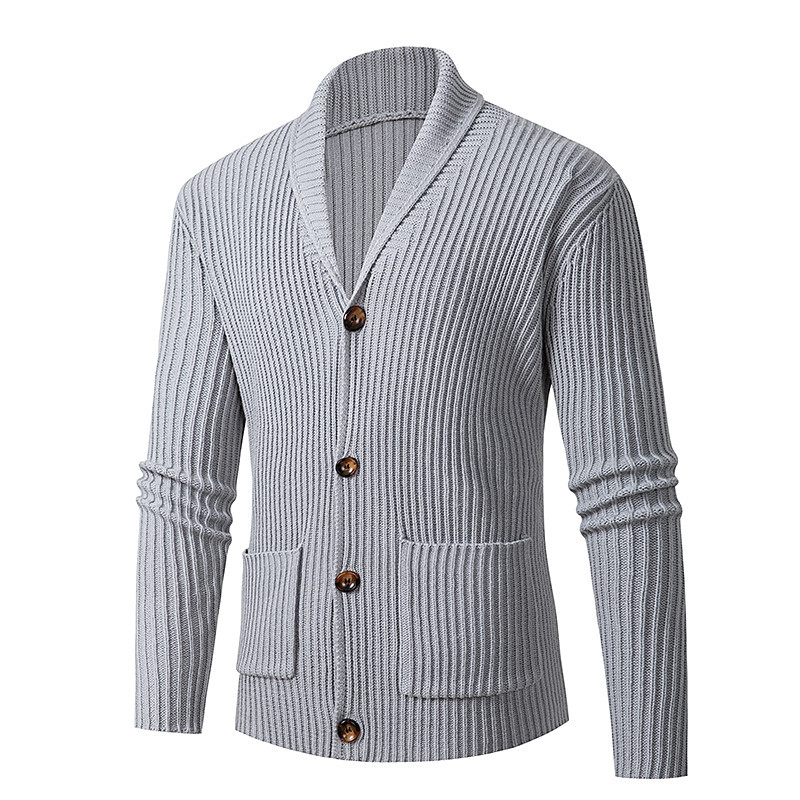 Men's Cardigan Sweater Cropped Sweater Knit Sweater Ribbed Knit Regular Button Up Pocket Plain Shawl Collar Fashion Classic Daily Wear Date Clothing Apparel Fall Winter Black Dark Blue M L XL
