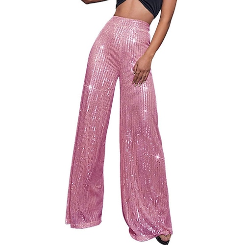 Damen Breites Bein Hosen Hose Glitzernde Hosen Elegant Modisch Glanz In voller Länge Hoher Taillenbund Glatt Pailletten Bequem Mikro-elastisch Party Strasse Party Abend Weinrot M beige Rosagold