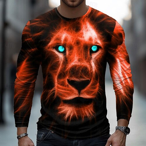 Herren Löwe 3D T Shirt Langarm T-Shirt 3D-Druck Rundhalsausschnitt Hemd Mode Basic Straße Lässig Täglich Rote Blau Grün Sommer Frühling Bekleidung S M L XL XXL XXXL