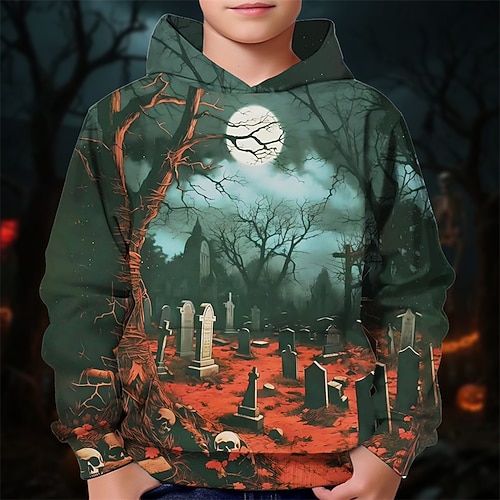 Halloween Jungen 3D Grafik Kapuzensweatshirt Langarm Frühling Herbst Mode Streetwear Kinder 4-12 Jahre Mit Kapuze Outdoor Lässig Täglich Normale Passform