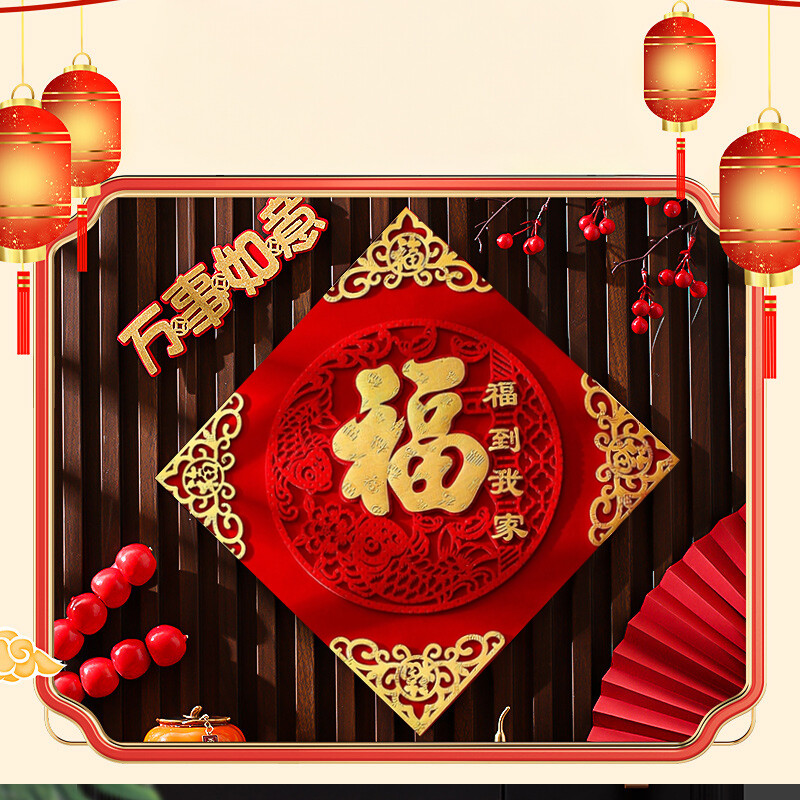 1 Stück 34,8 cm 3D Selbstklebendes Fu-Ornament für das chinesische Neujahr, 2026 Frühlingsfest Fu Samtaufkleber, Jahr des Pferdes Mondneujahrsdekorationen für Tür, Fenster, Schrank – Fu Dao Wo Jia