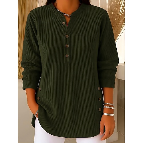 Per donna maglietta Liscio Essenziale Informale Manica lunga Girocollo Top regolari Giornaliero Fine settimana Nero Verde Cachi Estate Primavera
