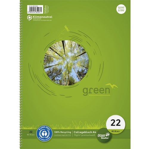 Ursus Green Notebook DIN A4 Kariert Spiralbindung Papier Grün Nicht perforiert Recycled 160 Seiten