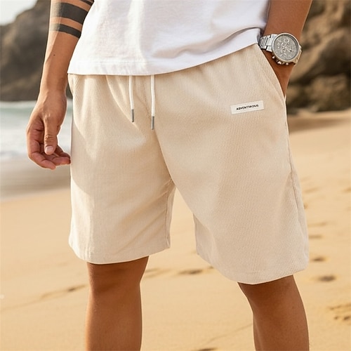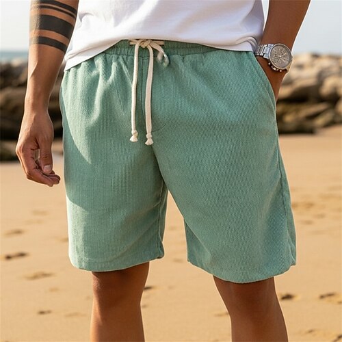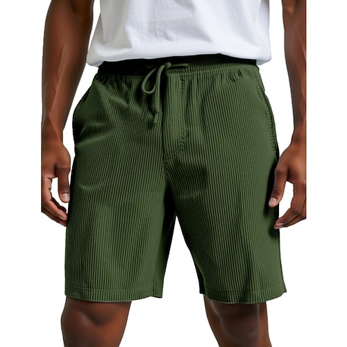 Per uomo Pantaloncini Estivi Shorts da Spiaggia Pantaloncini casual Pantaloncini di velluto a coste Coulisse Elastico in vita Tinta unica Comodità Lunghezza al ginocchio Quotidiano All'aperto Ferie