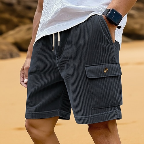 Per uomo Pantaloncini cargo Pantaloncini Estivi Pantaloncini casual Pantaloncini di velluto a coste Elastico in vita Coulisse Multi-tasche Semplice Comodità Traspirante Corto All'aperto Vacanza