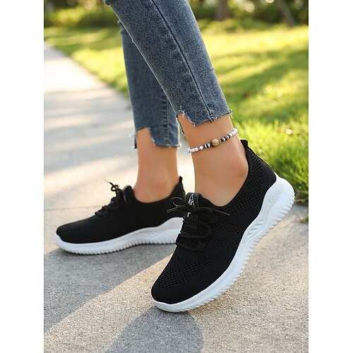 scarpe da passeggio leggere bianche in Flyknit da donna: comode sneakers traspiranti con lacci, adatte per tutto il giorno, viaggi, fitness, lavoro e uscite informali