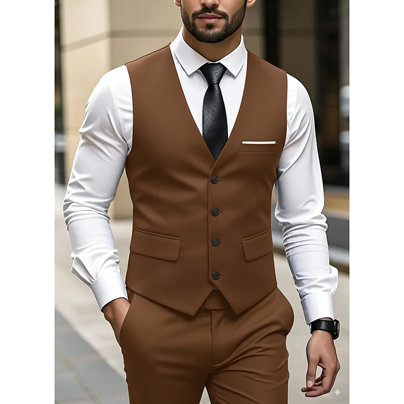 Men's Party Beach Wedding Linen Vest Shorts Lightweight V-neck Black White Casual Solid Colored Slim Fit 2 Piece Single Breasted Five-buttons
