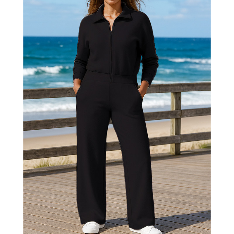 Women's One Piece Sweatsuit Lounge Outfits Drawstring Solid Colored Clothing Suit Fall Black Coffee Outdoor Travel Sports Moisture Wicking Long Sleeve Sport Activewear Micro-elastic Regular Fit