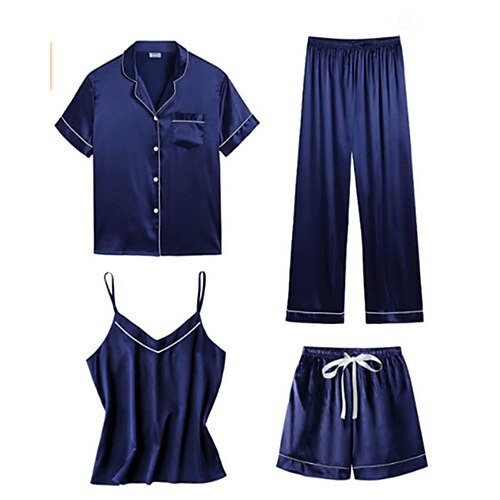 Per donna Pigiama Abbigliamento da Casa Set Pigiama Caldo Moda Casual Colore Puro Elastico in vita Pantalone Shorts Casa Vacanza Streetwear Manica Lunga Colletto a Camicia Nero Bianco Rosa Blu Reale