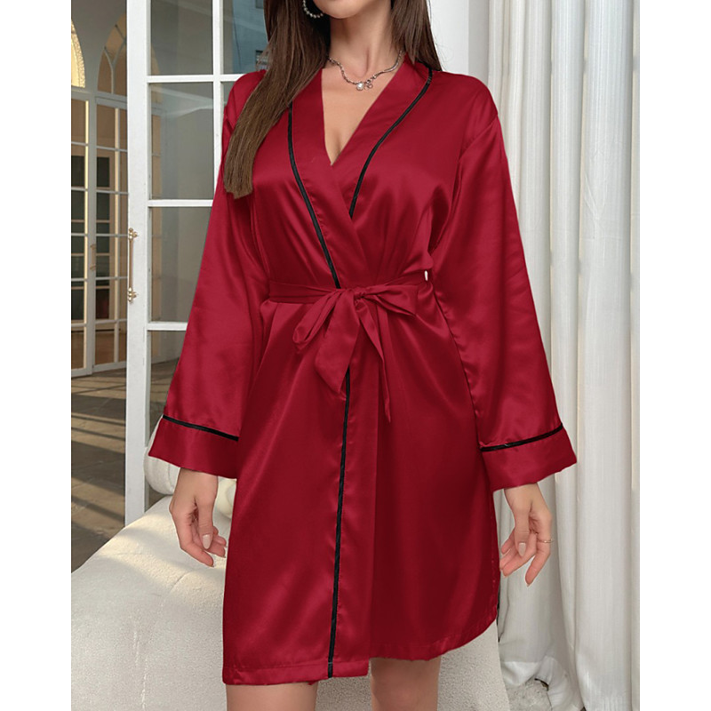 Women's Loungewear Robe Casual Soft Satin Patchwork Lace up Daily Home Bed Long Sleeve V Neck Black Champagne Pink Red Summer Regular Fit