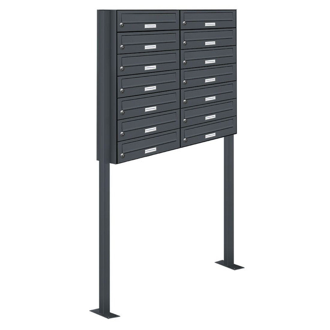 AL Briefkastensysteme 14 Fächer Premium Stand Briefkasten Anlage in RAL 7016 Anthrazit Grau, Post A4, robust, wetterfest, Artikelnummer: 132P14S2P7016