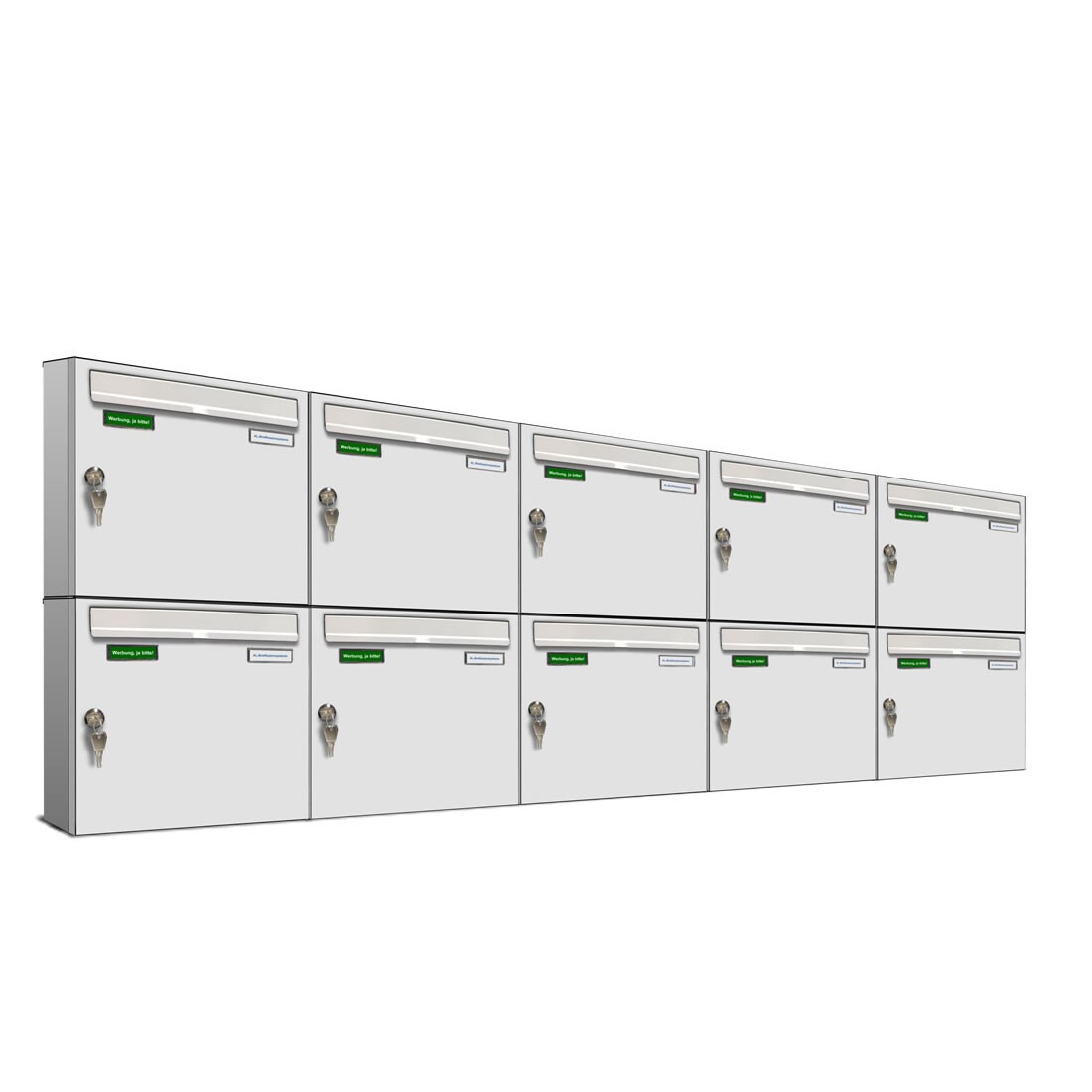 AL Briefkastensysteme 10 x Basic Wand Briefkasten RAL Farbe 9016 Verkehrs Weiss für Post A4, wetterfest, Artikelnummer: 431P10EA5P9016