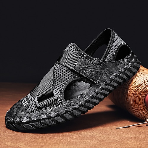 sandali da uomo in similpelle e rete, alla moda e comodi per l'uso quotidiano e le passeggiate estive