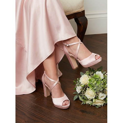 Scarpe da sposa eleganti con tacco alto e plateau color avorio e perle, per matrimoni in chiesa