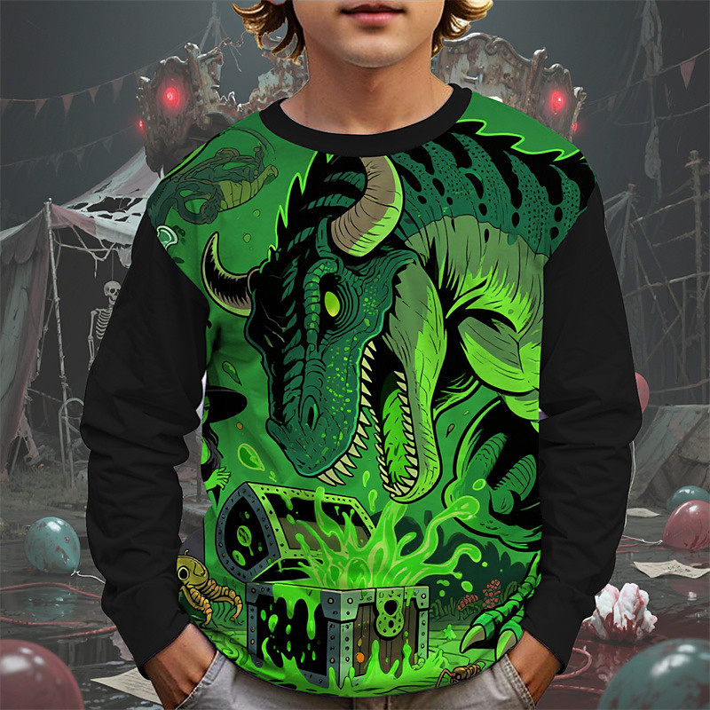 Halloween Boys' 3D Cartoon Dinosaur T shirt Tee Long Sleeve Spring Fall Fashion Basic Kids 4-12 Years Crew Neck Outdoor Casual Daily Regular Fit