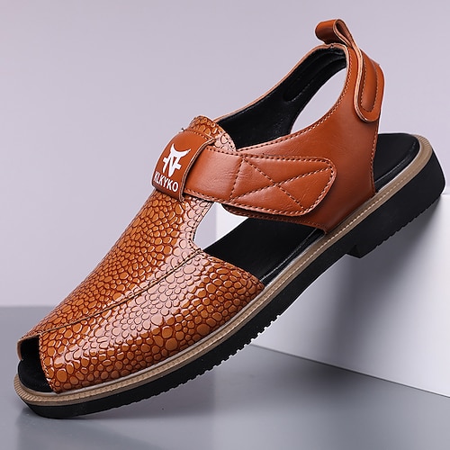 sandali da uomo in similpelle nera con design slip-on e texture coccodrillo, ideali per l'estate, eventi all'aperto e incontri informali