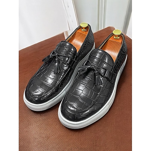 mocassini slip-on da uomo con motivo coccodrillo verde – stile casual business, comode scarpe in similpelle per l'ufficio e l'uso quotidiano