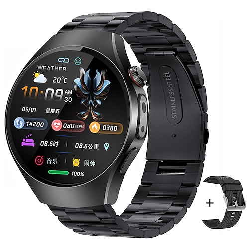 696 T98 Smartwatch 1.43 Zoll Smartwatch Fitnessuhr Bluetooth Schrittzähler Anruferinnerung Schlaf-Tracker Kompatibel mit Android iOS Herren Freisprechanrufe Nachrichtenerinnerung Uhren mit Ohrstöpseln