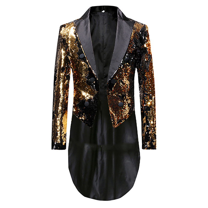 Men's Tuxedo Closure collar Party Sparkle Sequin Solid Colored Blazer Blue Red Gold Tailored Fit Double Breasted Six-buttons