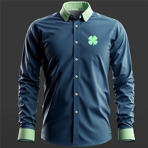 A quadrifoglio Moda Casual Per uomo Camicie stampate Per eventi Da mare Festival Primavera estate Collo ripiegabile Manica lunga Blu, Viola, Marrone S, M, L Tessuto elasticizzato a 4 vie Camicia San