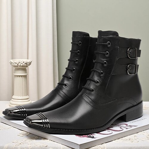 stivali da combattimento da uomo in pelle nera con fibbie: design audace con un tocco moderno, ideali per occasioni casual e semi-formali