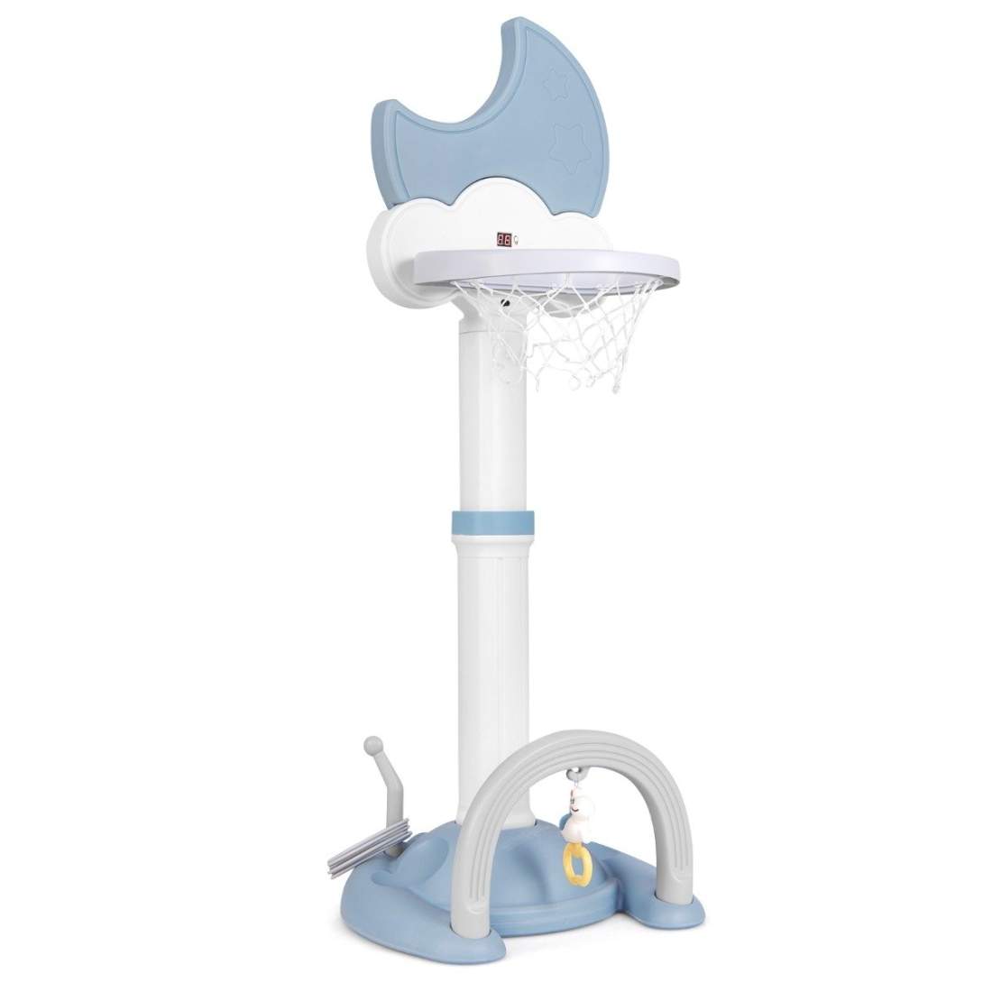 4 in 1 lasten koripallovanne, jossa koripallo & amp Jalkapallo & Rengasheitto koripalloteline, sininen