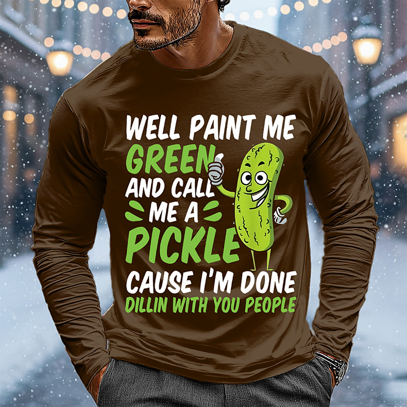 Well Paint Me Green And Call Me A Pickle Cause I'M Done Dillin With You People Men's Funny Slang T Shirt Long Sleeve T shirt 3D Print Crew Neck Shirt Fashion Daily Basic Street Casual Clothing Apparel