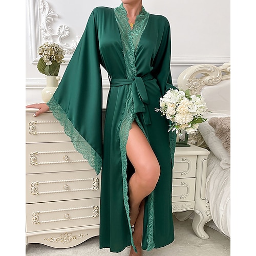 Per donna Pigiama Abbigliamento da Casa Camicia da Notte Tutina Caldo Moda Sexy Colore Puro Pigiama in raso di seta Coulisse Pizzo Casa Manica Lunga Scollo a V Nero Bianco Vino Verde militare Rosso