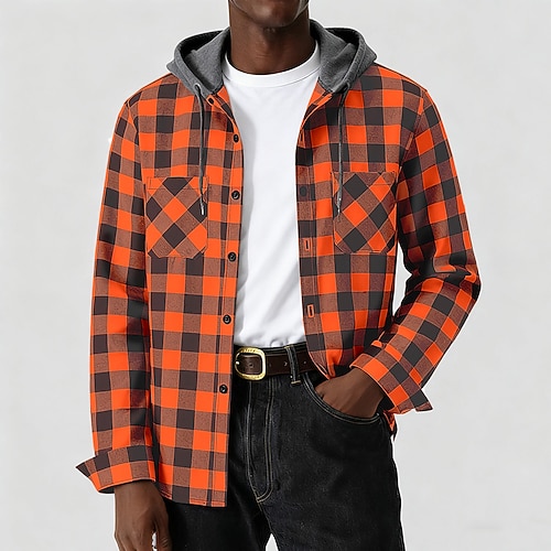 Per uomo Camicia Camicia di flanella Sopracamicia Bianco Giallo Vino Arancione Manica Lunga Plaid A quadri Con Cappuccio All'aperto Streetwear Con cappuccio Abbigliamento Moda Casual Confortevole