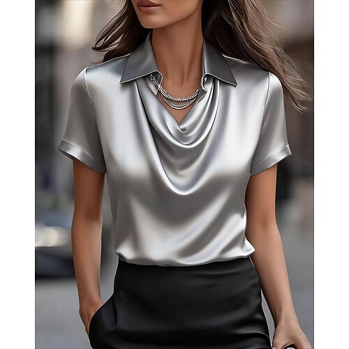Per donna Camicia Elegant Raso/Satin Blusa Semplice Elegante Manica Corta Colletto a Camicia Top Regolari Quotidiano Ferie Uscire Nero Bianco Champagne Giallo Vino Estate Primavera