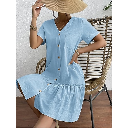 Per donna Mini Abito Abito a trapezio Casual Quotidiano Vestibilità comoda Semplice Manica Corta Scollo a V Blu Bianco Vino Verde militare Estate Primavera