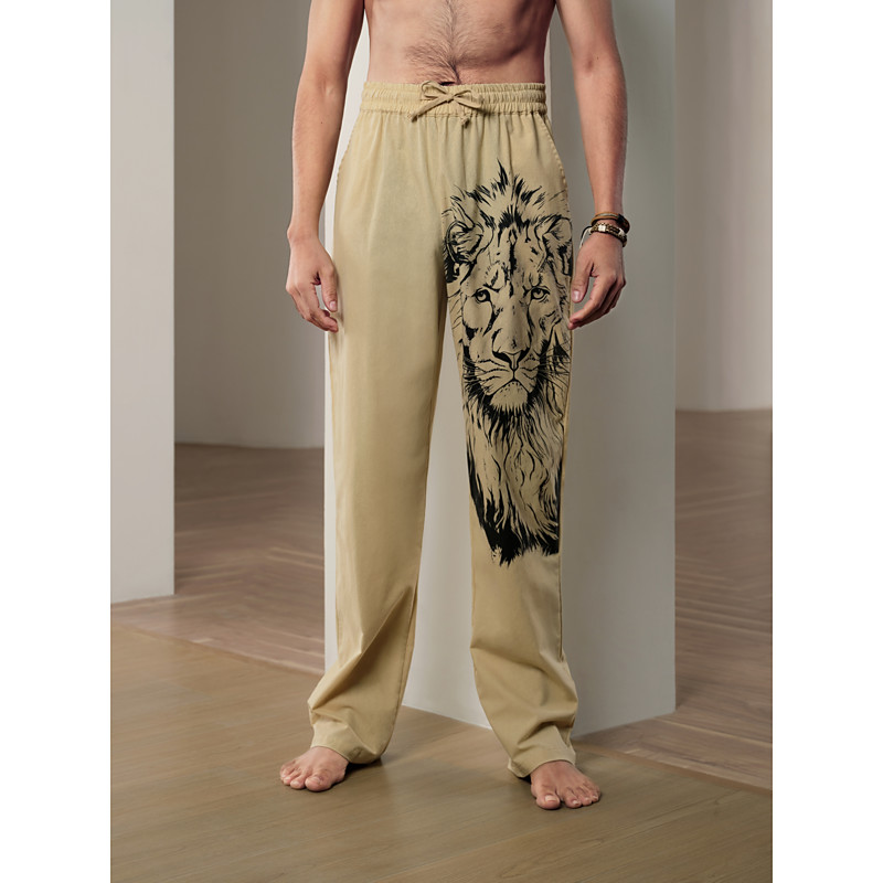 Men's Animal Lion Linen Pants Trousers Baggy Pants Mid Waist Streetwear Hawaiian Designer Casual Daily Holiday Drawstring Elastic Waist 3D Print Spring Summer 3D Print Blue Green Khaki