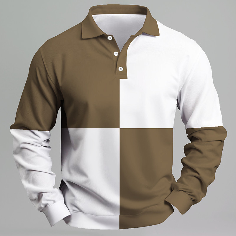Men's Stripes Rugby Polo Long Sleeve Polo Shirts Collared Shirts Casual School Outdoor Business Athleisure 3D Print Spring Fall Blue Brown Green