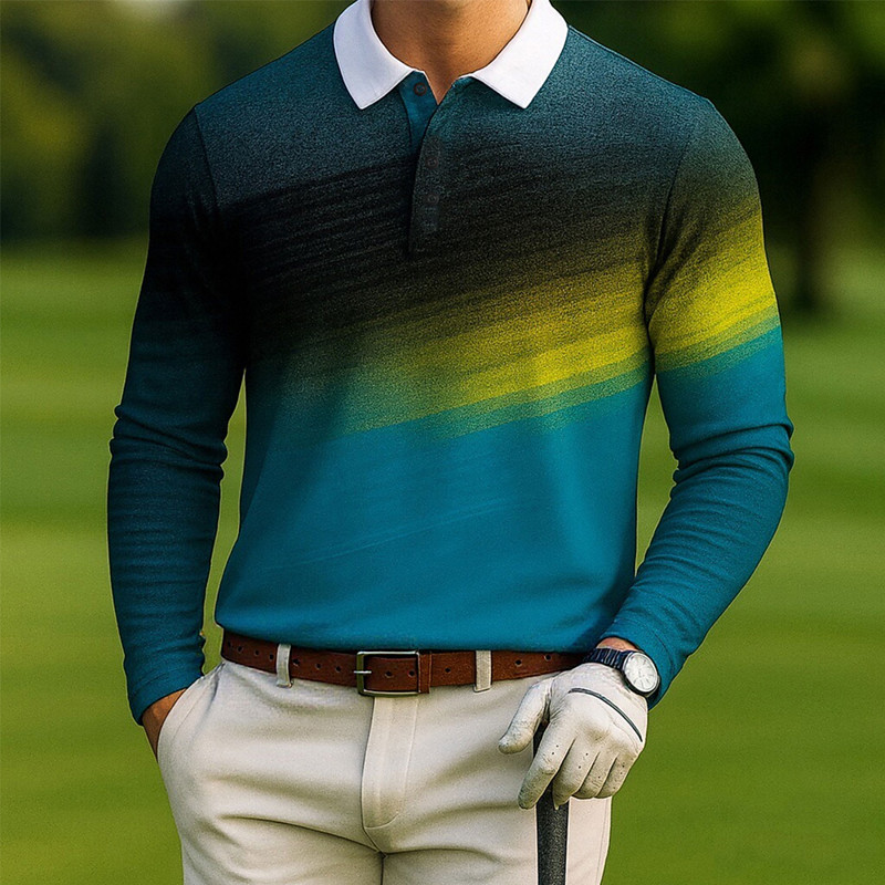 Men's Geometic Golf Polo Long Sleeve Polo Shirts Lapel Casual Outdoor Athleisure Daily Wear 3D Print Buttons Spring Fall Winter Blue Green